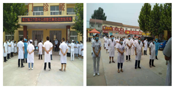 中新河南網(wǎng)8月13日電(王曉磊)為全面提高應對新冠肺炎的能力,提升大規(guī)模人群新冠病毒核酸篩查檢測的綜合處置能力,8月12日11時,河南省濮陽縣梁莊鎮(zhèn)衛(wèi)生院在衛(wèi)生院大院內(nèi)召開了組織開展對全鎮(zhèn)居民進行核酸檢測采集實戰(zhàn)演練及疫情防控加壓會議,衛(wèi)生院全院職工、抽調(diào)的20名優(yōu)秀鄉(xiāng)村醫(yī)生參加了此次演練活動。