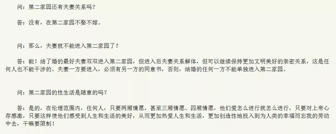 更加荒誕的是,張自繁不但要求信徒拋棄家庭,還公然鼓吹“性自由”,稱“擁有100個(gè)情人自然就成為了‘仙人’”。在他的各類書籍中,對(duì)“性”的描寫也極其露骨,稱“性愛(ài)是一切嬉戲活動(dòng)中最高級(jí)的一種游戲”,并“提倡男女關(guān)系多元化,只要兩廂情愿,可以隨意保持長(zhǎng)久的情感關(guān)系”。