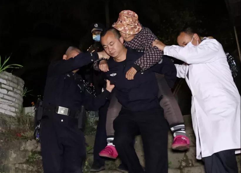 一切準(zhǔn)備工作就緒后,2021年4月28日,桐梓、安龍兩地的取締行動(dòng)正式實(shí)施。凌晨1點(diǎn)左右,趁著夜色籠罩,公安、民政、衛(wèi)健等部門的解救人員開始悄悄向兩處窩點(diǎn)進(jìn)發(fā)。其中一處窩點(diǎn)建在海拔上千米的大山上,地勢(shì)十分險(xiǎn)峻,車輛行至沒(méi)有路的地段后,還要經(jīng)羊腸小道步行兩個(gè)小時(shí)才可抵達(dá)。途中,不少解救人員因?yàn)樘旌谙掠曷坊さ乖诘,旁邊就是一眼望不到底的深淵!克服了重重困難順利到達(dá)目的地后,凌晨6點(diǎn)30分,兩地同時(shí)采取行動(dòng),將窩點(diǎn)內(nèi)人員全部成功控制并安全帶離,未出現(xiàn)任何閃失。