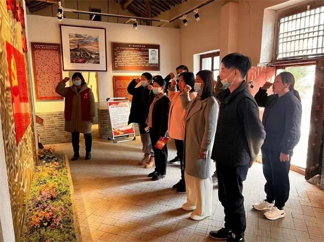 在劉橋縣委舊址展館內,全體黨員干部在講解員的介紹下再次回顧了徐一榮、徐一舟等先烈的革命事跡,在一張張老照片和一件件舊實物前,他們佇立凝神,沉思良久,深刻地感受到了革命先烈們崇高的革命理想、堅定的革命意志和大無畏的革命精神。最后,全體黨員面對鮮艷的黨旗,莊嚴地高舉右拳,飽含力量和激情,重溫入黨誓詞,用最鏗鏘的聲音表達最堅定的決心。