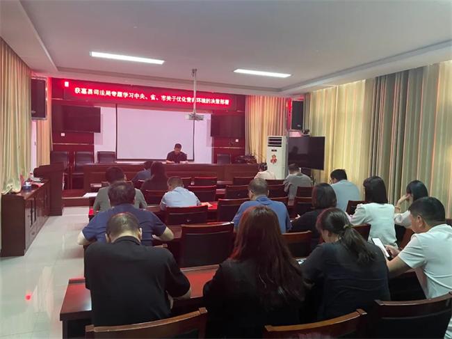 獲嘉縣司法局專題學(xué)習(xí)中央、省、市關(guān)于優(yōu)化營商環(huán)境的決策部署