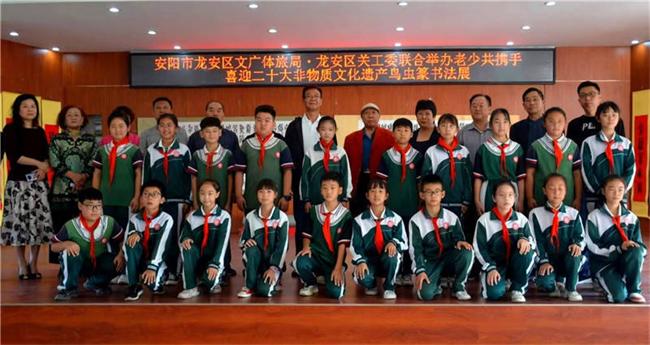 龍安區(qū)關心下一代工作委員會、龍安區(qū)文廣體旅游局、龍安區(qū)教育局領導、干部、員工出席并講話。部分學生參加開幕式,參觀了非物質文化遺產鳥蟲篆書法作品展。安陽市五老退休干部和豫北書畫院書畫藝術家現場舉行了筆會交流。令參觀者和學生深受啟發(fā)和鼓舞。