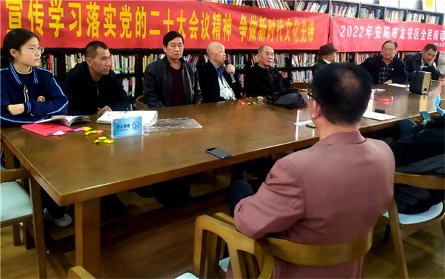 中新河南網(wǎng)11月10日電(趙力志 李泠頤)11月六日下午,安陽(yáng)市龍安區(qū)龍圖街甲骨文書(shū)屋召開(kāi)“宣傳學(xué)習(xí)落實(shí)二十大會(huì)議精神,爭(zhēng)做新時(shí)代文化先鋒座談會(huì)”。