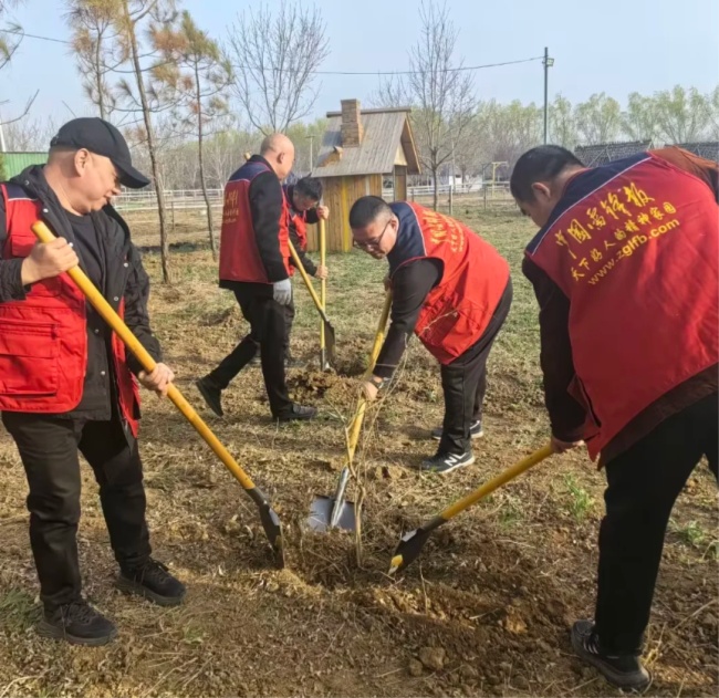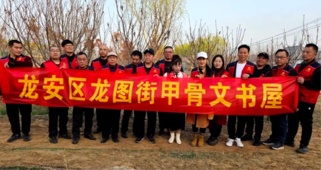 3月18日下午,該工作站又與龍安區(qū)龍圖街甲骨文書(shū)屋、豫北書(shū)畫(huà)院工作人員一起,迎著春風(fēng),在貝爾春天生態(tài)園。植樹(shù)勞動(dòng)。大家爭(zhēng)先恐后共植石榴村40余棵