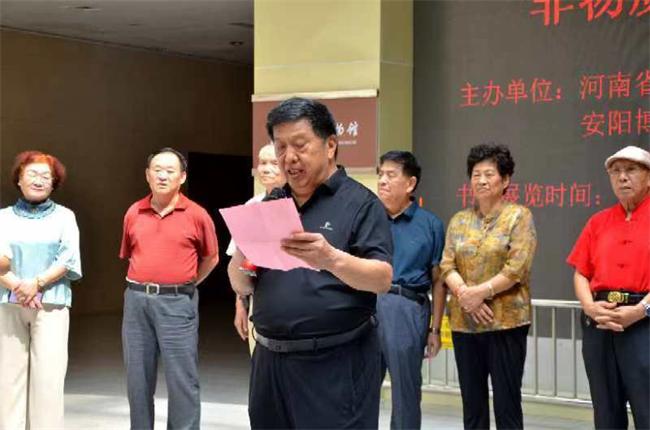 參加開(kāi)幕式的安陽(yáng)市老年書(shū)畫(huà)大學(xué),近40位老師和學(xué)員,還自帶筆墨、顏料,現(xiàn)場(chǎng)寫(xiě)字畫(huà)畫(huà),相互學(xué)習(xí)交流,受到廣大參觀者的好評(píng)。