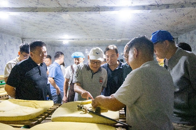 工廠冷藏室內(nèi),磨豆師傅用鐵鉤提著一塊豆腐,向正在品嘗的考察團(tuán)人員熱情介紹著:“我們洧川的豆腐,最大的特色就是筋道,俗話說‘麻繩串豆腐,提不起來’,洧川豆腐不但能用麻繩穿起來,還能用鐵鉤掛起來,且豆香濃郁,煮而不散,越煮越筋。”說著,師傅還切下一塊豆腐,將其擲在另一塊豆腐上,只見豆腐不但未撞爛,反而高高彈起,引得在場眾人拍手大笑,對洧川豆腐的“筋道”有了生動形象的認(rèn)知。