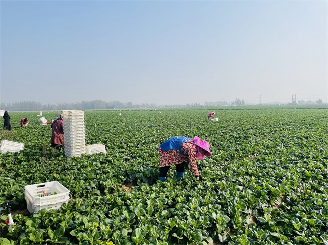 中新河南網(wǎng)(田波濤)10月29日上午,鄭州航空港經(jīng)濟(jì)綜合實(shí)驗(yàn)區(qū)洧川鎮(zhèn)劉春桃村田間,菜農(nóng)們采摘蔬菜忙得熱火朝天。今天,將有近8000斤蔬菜運(yùn)往鄭州富士康,不出半天,這些蔬菜將出現(xiàn)在富士康的餐廳,讓企業(yè)員工足不出區(qū)就能吃上新鮮美味、安全健康的蔬菜。