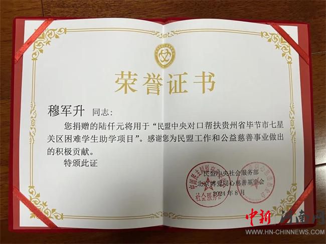 宛如2024年的這個秋日里,在一個又一個這樣循環(huán)往復(fù)的秋日里,他帶領(lǐng)“學(xué)雷鋒送健康民盟醫(yī)療專家公益行”志愿服務(wù)隊,始終以服務(wù)基層作為公益活動的精準(zhǔn)發(fā)力方向,把醫(yī)療服務(wù)送到了工地、田間和炕頭,真正腳踏實地地做著普通卻又利于人民群眾的善舉,影響和帶動更多的人傳播和弘揚雷鋒精神。這不,除了帶領(lǐng)團(tuán)隊做義診等公益活動,為積極響應(yīng)《民盟中央對口幫扶七星關(guān)區(qū)義務(wù)教育高質(zhì)量發(fā)展實施方案》倡議的號召,他默默地踐行雷鋒精神,身體力行踴躍捐款,資助困難學(xué)生,為助力畢節(jié)七星關(guān)區(qū)教育事業(yè)貢獻(xiàn)自己的一份力量。