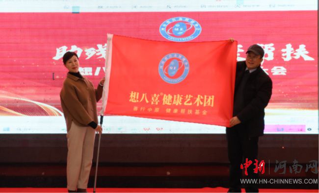 會議舉行了河南省營養(yǎng)保健協(xié)會想八喜健康藝術(shù)團成立儀式。薛輝向藝術(shù)團團長馮海萍授旗,標志著想八喜健康藝術(shù)團的正式啟動。