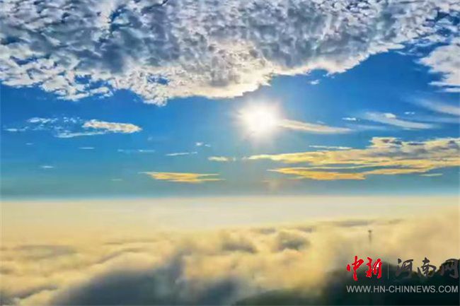 中新河南網(wǎng)(鐘麟 龍剛)初秋時節(jié),在河南省南陽市桐柏縣淮源景區(qū),每逢雨后初晴,都會出現(xiàn)霞光云海流光溢彩的絢麗景象,宛若置身仙境,令人嘆為觀止。這種景象就是千古流傳的“大復(fù)橫云”奇觀。