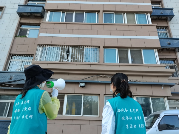 嚴(yán)守小區(qū)關(guān)卡,通過喇叭廣播、電話、居民微信群通知等方式,倡導(dǎo)居民戴好口罩,掃碼出行,同時(shí)引導(dǎo)居民前往就近核酸檢測點(diǎn)參與核酸檢測。