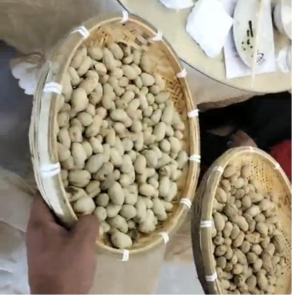 稍后,大家又看到煮熟的花生果,施果根保的花生果又白又亮,特別好吃!沒施果根保的花生果,發(fā)黃不好吃。