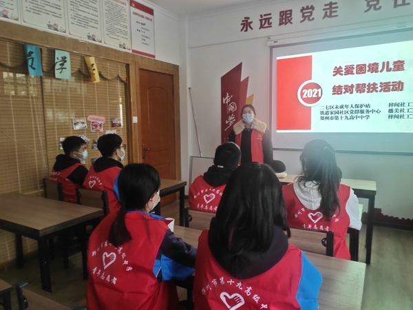 中新河南網12月26日電(通訊員郭保蒼)為更好地幫助困境兒童,幫助困境兒童的成長,在二七區(qū)民政局和二七區(qū)福華街道辦事處的支持下,梓聞社工二七區(qū)福華街道未成年人保護工作站(以下簡稱未保社工)聯(lián)合鐵道家園社區(qū)黨群服務中心播美社工(以下簡稱社區(qū)社工),攜手鄭州市第十九高級中學和學校社工,成立了學生志愿者結對幫扶小組,入戶為轄區(qū)難以走出家門的困境兒童提供長期的閱讀輔導、心理陪伴等服務。2021年12月22日下午,幫扶小組走進困境兒童家中,了解兒童基本情況,與兒童和家人相互熟悉,為日后的結對幫扶建立關系。