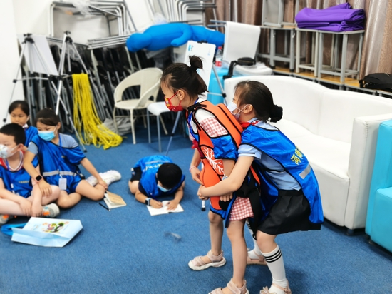 本次活動共有6項區(qū)域,活動還未開始,小記者們就興奮地在各個區(qū)域流連忘返,對AED、道具玩偶“東東”等愛不釋手。活動開始,志愿者就將大家分為了3組同時進(jìn)行,志愿者認(rèn)真講解、小記者專心聽講并時不時做筆記,在講解完就是大家最為期待的體驗環(huán)節(jié)了。在繩結(jié)大比拼中,他們兩兩檢查對方的繩結(jié)是否合格,在海姆立克急救法中,他們兩兩一組,互相體驗“施救者”與“被救者”,通過親身體驗,掌握這項技能,時間一分一秒過去,我們的活動也走到了尾聲,活動最后,志愿者根據(jù)大家的學(xué)習(xí)掌握情況,為小記者們頒發(fā)了兒童訓(xùn)練營結(jié)業(yè)證書,并告誡他們回去后要將學(xué)習(xí)掌握的知識傳播出去,更多的人掌握到這些安全救護(hù)知識。
