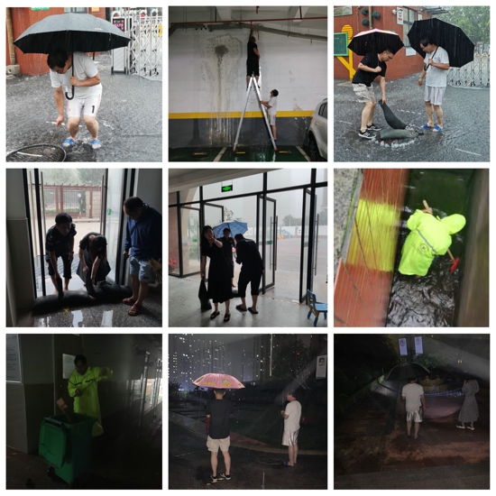 7月20日,暴雨持續(xù)傾盆而下,道路上排泄不及的雨水開(kāi)始倒灌,大量雨水伴著泥漿、雜物沖進(jìn)外小校園,涌入教學(xué)樓。災(zāi)情就是命令,外國(guó)語(yǔ)小學(xué)校領(lǐng)導(dǎo)班子第一時(shí)間趕赴兩個(gè)校區(qū)搶險(xiǎn)救災(zāi)。劉娜校長(zhǎng)、張鵬召主任和值班教師吳勁松、劉艷鴿、周丹等在翰林校區(qū)搬運(yùn)沙袋堵塞積水;陳永貴副校長(zhǎng)、時(shí)永軍主任、保安、保潔一起冒著暴雨疏通排水管道雜物、排查室內(nèi)漏水情況;韓輝副校長(zhǎng)帶領(lǐng)朗悅校區(qū)值班教師關(guān)龍飛,以及保安、保潔將一樓電腦、教材教具、圖書等物品一一挪移,并在各出口擺上一層又一層的沙袋,盡力抵制洪水沖進(jìn)教學(xué)樓。就這樣,他們忙碌了一天一夜,無(wú)怨無(wú)悔堅(jiān)守著我們的校園,這一夜風(fēng)雨飄搖,這一夜愛(ài)比雨大,責(zé)任比水深!