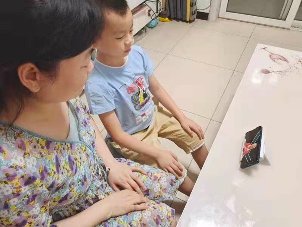 學(xué)生和家長(zhǎng)一同觀看講座