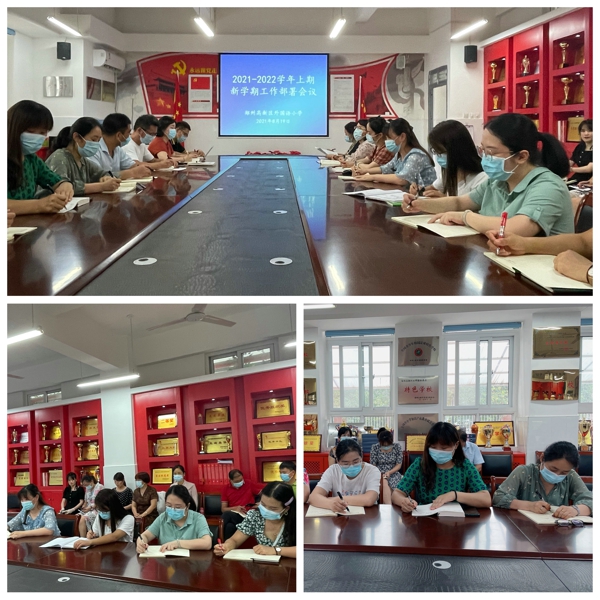 會議中,行政副校長吳晶晶公布了新學(xué)年學(xué)校組織架構(gòu),明確了外小領(lǐng)航者的崗位和職責(zé)。教學(xué)副校長魏艷圍繞線上教學(xué)實(shí)施具體方案、教師專業(yè)發(fā)展、“雙減”政策下疑彩課堂的高效實(shí)施等方面,做出統(tǒng)籌安排。德育副校長陳永貴指導(dǎo)教師做好線上教學(xué)“開學(xué)第一課”的準(zhǔn)備工作,幫助教師理清新學(xué)期德育工作思路。校長助理張鵬召主任對疫情防控期間的閉環(huán)管理、開學(xué)后入離校安全、學(xué)校清潔消毒、學(xué)生晨午檢等相關(guān)工作進(jìn)行全面部署。