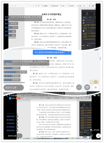 中新河南網(wǎng)9月16日電(通訊員何利敏)少年兒童是祖國的花朵、未來的棟梁,他們每一步成長都至關(guān)重要。為營造未成年人健康成長的環(huán)境,進一步提高未成年人的法治意識和自我保護能力,維護未成年人的合法權(quán)益,9月13日上午,鄭州高新區(qū)外國語小學(xué)五龍口校區(qū)各班班主任老師通過直播課組織學(xué)生學(xué)習(xí)《中華人民共和國未成年人保護法》和《未成年人學(xué)校保護規(guī)定》。