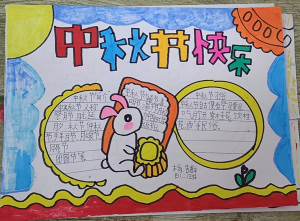 活動(dòng)中,隊(duì)員收集有關(guān)中秋節(jié)的來歷、習(xí)俗、美食等知識(shí),或者與中秋有關(guān)的故事、詩歌、書籍、與家人一起體驗(yàn)中華民族傳統(tǒng)節(jié)日的魅力所在,通過繪制手抄報(bào)或者中秋賀卡寄托著最真摯的節(jié)日祝福,也進(jìn)一步增強(qiáng)了隊(duì)員們對(duì)中秋這一傳統(tǒng)節(jié)日的了解。