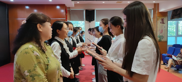 接著,導(dǎo)師代表崔璐君與年輕教師共勉,她希望青年教師們能虛心學(xué)習(xí),不斷向前;能立足課堂,承前研磨;能把握機遇,突破自我;能互相學(xué)習(xí),教學(xué)相長。徒弟代表范甜甜老師表示在師傅的引領(lǐng)下,會積極學(xué)習(xí),以夢為馬;奉獻青春,努力做一名優(yōu)秀的教師。