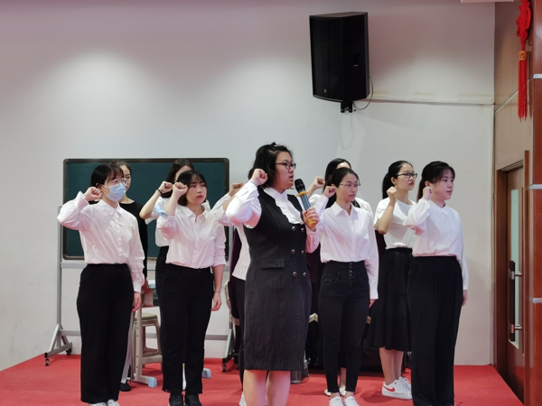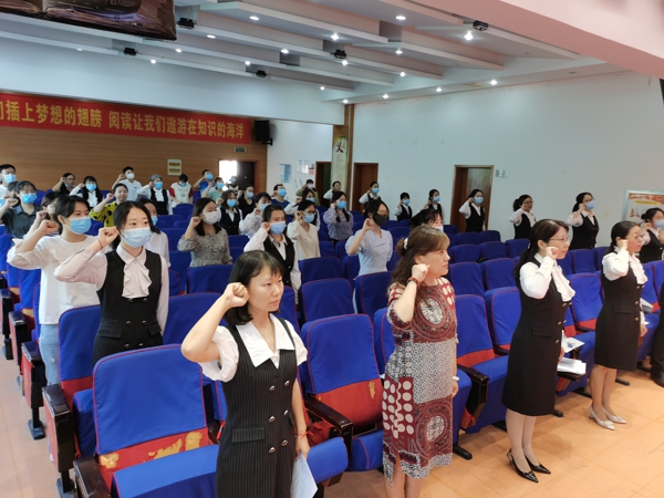 教導(dǎo)處副主任張悅帶領(lǐng)全體教師重溫教師誓詞