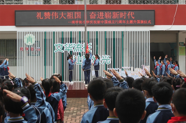 9月27日南學(xué)街小學(xué)舉行迎國(guó)慶主題升旗儀式