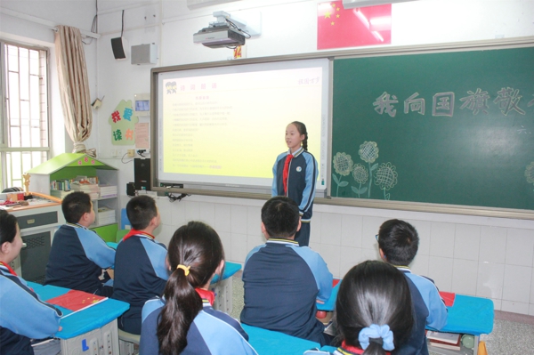 在主題隊(duì)會(huì)活動(dòng)中,各中隊(duì)別出心裁,開展了一系列慶;顒(dòng)。在五(1)中隊(duì)教室,輔導(dǎo)員老師宋曉娟帶領(lǐng)同學(xué)們觀看了愛國(guó)教育主題宣傳片,一起回顧了新中國(guó)的發(fā)展歷程,增強(qiáng)了隊(duì)員們的民族自豪感,同時(shí)宋曉娟還通過愛國(guó)知識(shí)競(jìng)答等形式不僅豐富了孩子們的知識(shí),還培養(yǎng)了他們的愛國(guó)之情。在六(1)中隊(duì),輔導(dǎo)員張荷老師舉行了小型的愛國(guó)詩(shī)詞朗誦活動(dòng),孩子們興趣高昂,積極參與,一句句優(yōu)美的詩(shī)詞和飽含深情的祝福語(yǔ)表達(dá)了孩子們對(duì)祖國(guó)的熱愛,對(duì)家鄉(xiāng)的熱愛,大家紛紛表示要將愛國(guó)之情融入學(xué)習(xí)生活的每一天,從小努力奮斗,將來也要通過自己的努力報(bào)效祖國(guó)。