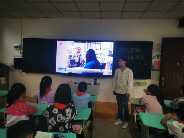 首先,學校通過電子屏、宣傳展板等形式,宣傳《中華人民共和國未成年人保護法》,增強了學生的法治觀念,提高了學生自護意識和防范能力。在主題宣講集會上,該校大隊輔導員王曉杰勉勵全體學生要養(yǎng)成學法、知法、守法的良好習慣,為營造良好、和諧的校園法治氛圍,構建和諧校園作出貢獻。