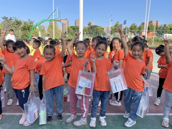 各班班主任為一年級新生送上了祝福和溫馨的擁抱,讓孩子們感到無比的快樂和幸福。接著,學校為一年級新生贈送了愛的禮物,有口罩、消毒濕巾、免洗手消毒液、學生字典等,孩子們興高采烈地接過入學大禮包,眼角藏不住的是快樂與滿足。最后,各班老師組織班級進行合影,留下了這美好的瞬間,紀念正式成為小學生的這一天。