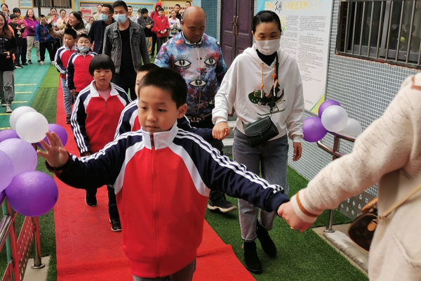 在全校師生的夾道歡迎下,在家長(zhǎng)的陪同下,一年級(jí)的9名新生滿(mǎn)懷好奇地踏上紅毯,通過(guò)氣球拱門(mén),一路歡笑步入教室。在老師的引導(dǎo)下,學(xué)生和家長(zhǎng)有序就座。
