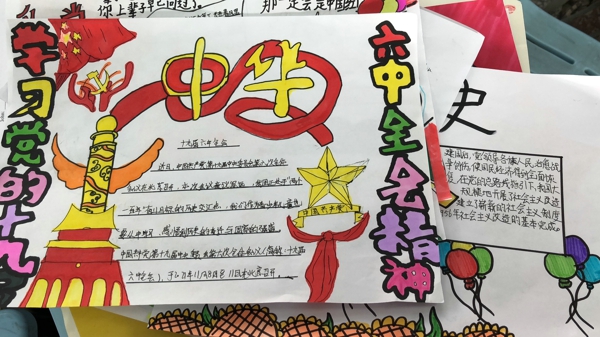 在中隊(duì)輔導(dǎo)員的引領(lǐng)下,各中隊(duì)根據(jù)自己學(xué)生的特點(diǎn)進(jìn)行針對(duì)性的學(xué)習(xí)。如六三中隊(duì)從以下六部學(xué)習(xí):第一部分分會(huì)議召開(kāi)背景;第二部分會(huì)議的重要意義;第三部分會(huì)議議程;第四部分會(huì)議看點(diǎn);第五部分為何要總結(jié)黨的百年奮斗的重大成就和歷史經(jīng)驗(yàn);第六部分百年征程歷次六中全會(huì)。還有些中隊(duì)以手抄報(bào)的形式勾畫(huà)出自己的希望,有些中隊(duì)結(jié)合生活經(jīng)驗(yàn)談感受,暢談學(xué)習(xí)十九屆六中全會(huì)精神的心得體會(huì)。