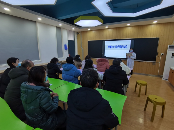 活動開始,校長宋建勇介紹了當(dāng)前預(yù)防流感的嚴(yán)峻形勢,要求全體師生高度重視,積極行動,采取有效措施防控流感。隨后校醫(yī)杜曉楠通過講解甲型流感預(yù)防知識,讓大家認(rèn)識到什么是甲型流感、流感的潛伏期及癥狀、流感的傳播方式和預(yù)防措施,以及消毒液的有效配比等知識。