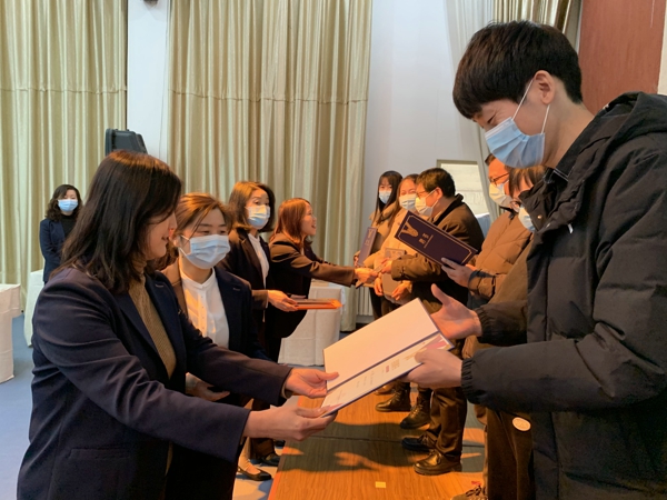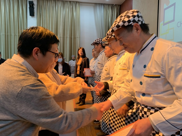 園領(lǐng)導(dǎo)為廚藝大賽獲獎(jiǎng)?wù)哳C獎(jiǎng)