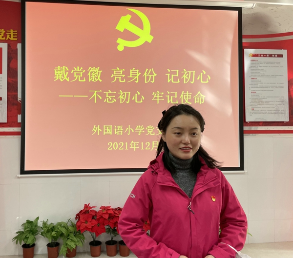 戴黨徽、亮身份、記初心。“黨徽”是黨員身份的象征。正確佩戴黨員徽章,亮明黨員身份,有利于黨員自覺接受群眾監(jiān)督,發(fā)揮模范帶頭作用。外小黨支部為全體黨員教師統(tǒng)一配發(fā)了黨員徽章,要求全體黨員教師正確佩戴黨徽。