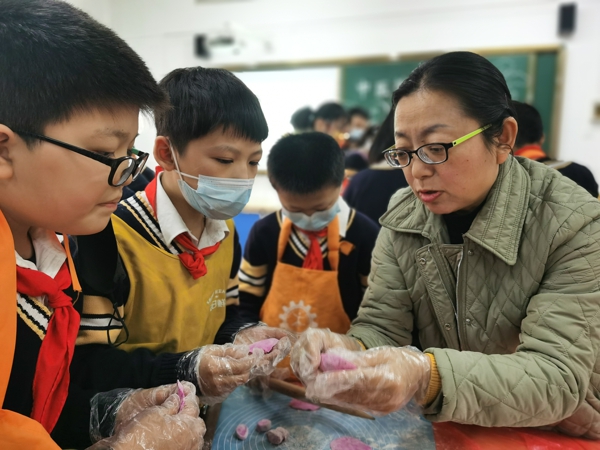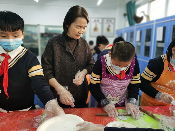 孫冬梅校長指導(dǎo)孩子們包餃子