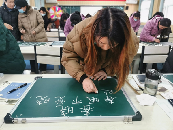 參賽教師精心準(zhǔn)備,全神貫注,盡情揮灑著手中的粉筆和鋼筆,一絲不茍地把握每個(gè)漢字的間架結(jié)構(gòu),展示了他們的書(shū)寫(xiě)風(fēng)采和職業(yè)魅力。