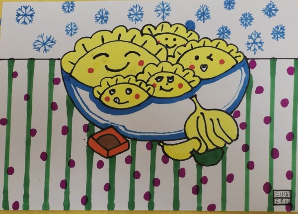 餃子,作為冬至這個(gè)團(tuán)圓日子里必不可少的節(jié)日飯,它的內(nèi)涵早已超出了食物的范疇。冬至節(jié),孩子們和家人一起畫出心中的創(chuàng)意中國餃,這一張張五顏六色的中國餃,不但表達(dá)了孩子們對(duì)傳統(tǒng)節(jié)日的熱愛,同時(shí)也寄托了他們對(duì)祖國的祝福。