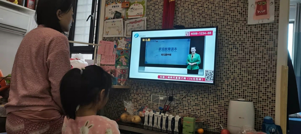 家長和孩子一同觀看安全教育講解