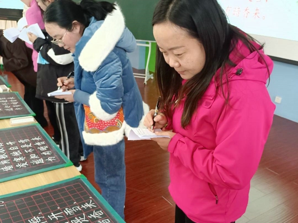 讀書為精神打底,寫字為人生奠基。一手漂亮的粉筆字是教師自身專業(yè)素養(yǎng)的體現(xiàn),并能引領(lǐng)學(xué)生寫好漢字,傳承中國(guó)傳統(tǒng)文化。比賽現(xiàn)場(chǎng)緊張而有序,老師們書寫的作品或頓挫有致,或蒼勁有力,或娟秀飄逸,或婉轉(zhuǎn)流暢,一筆一劃顯漢字魅力,方寸之間展扎實(shí)功底。