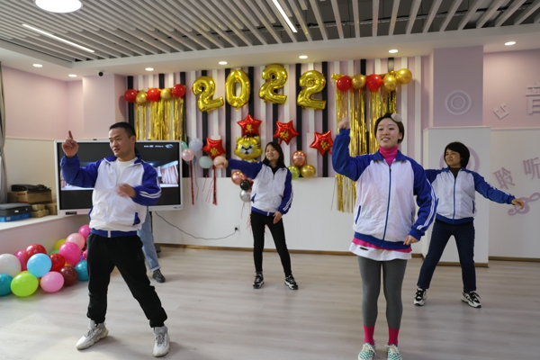 在教師活動中,校區(qū)教師也圍繞“感恩遇見”為主題,開展了別樣的元旦聯(lián)歡活動。老師們或唱或跳,在祥和、溫馨的氛圍中一起慶祝元旦。最后,校區(qū)執(zhí)行校長劉彥霞也向老師們提出新年期許,表達新年祝福。