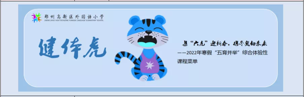 寒假里,鄭州高新區(qū)外國(guó)語(yǔ)小學(xué)為出彩果兒準(zhǔn)備了“集‘六虎’迎新春,攜冬奧向未來(lái)”五育并舉綜合體驗(yàn)性課程,其中迎冬奧“健體虎”課程希望出彩果兒們學(xué)習(xí)弘揚(yáng)奧林匹克精神,發(fā)展體育興趣愛(ài)好,助力冬奧會(huì),一起向未來(lái)!