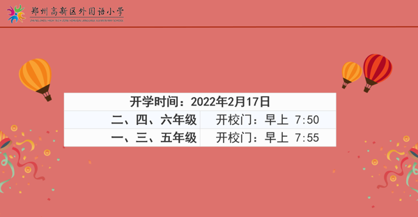鄭州高新區(qū)外國語小學(xué)2022年春季開學(xué)致家長及學(xué)生的一封信