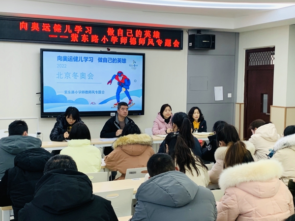 中新河南網(wǎng)2月17日電(吳勇強(qiáng))寒冬過后,春風(fēng)起兮,新學(xué)期如約而至。為進(jìn)一步規(guī)范教師職業(yè)行為、明確師德底線,弘揚(yáng)教師愛崗敬業(yè)、為人師表的高尚師德,2022年2月16日上午,管城回族區(qū)紫東路小學(xué)全體教職工齊聚會(huì)議室,召開了以“向奧運(yùn)健兒學(xué)習(xí)做自己的英雄”為主題的師德師風(fēng)專題會(huì)。