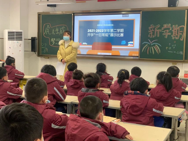 團結(jié)路校區(qū)的開學(xué)第一課包含了了解冬奧知識,學(xué)習(xí)冬奧精神的“冬奧思政課”;返校后的疫情防控“科普課”;疫情下的心理健康“防護課”;以及行為常規(guī)的“訓(xùn)練課”。在學(xué)生的行為常規(guī)訓(xùn)練中,通過對學(xué)生的行為常規(guī)教育的細(xì)化和規(guī)范,引導(dǎo)教育學(xué)生們形成規(guī)范意識,促進(jìn)自我管理,