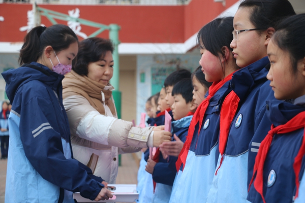 儀式上,校領(lǐng)導(dǎo)為榮獲寒假作業(yè)小標(biāo)兵榮譽(yù)稱號(hào)的隊(duì)員頒發(fā)了榮譽(yù)證書并號(hào)召全體少先隊(duì)員向他們學(xué)習(xí),獲獎(jiǎng)代表也分別分享了自己的收獲和夢(mèng)想。