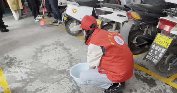在校黨團(tuán)員有序集合后,便在黨支部的帶領(lǐng)下緊張地忙碌起來(lái)了,有的老師將車(chē)輛移出來(lái)以方便打掃;有的黨員拿著掃帚清掃地面,對(duì)垃圾、雜物進(jìn)行了徹底清理,不留衛(wèi)生死角;有的團(tuán)員拿著抹布對(duì)門(mén)窗、扶手、墻面進(jìn)行擦拭。清掃場(chǎng)面熱火朝天,干勁十足,黨團(tuán)員團(tuán)結(jié)協(xié)作,互幫互助,配合默契,雖然累在其中,但也其樂(lè)融融。經(jīng)過(guò)一通不怕麻煩、不怕臟累的打掃,車(chē)棚的衛(wèi)生環(huán)境煥然一新,電動(dòng)車(chē)擺放整齊有序。