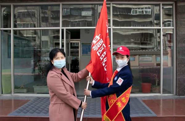 趙校長為學(xué)雷鋒服務(wù)隊授旗