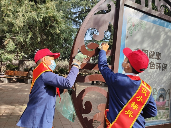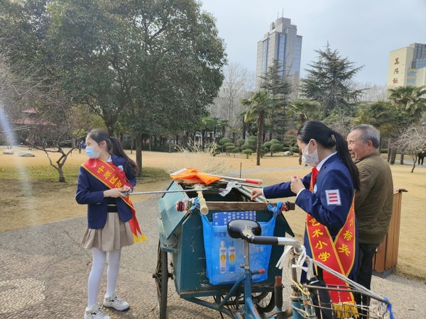 隨后,小志愿者們在輔導(dǎo)員老師的帶領(lǐng)下走進碧沙崗公園,在做好自身防護的同時,盡己所能幫助清潔員爺爺一起清掃垃圾,擦拭宣傳欄、健身器材、垃圾桶等公共物品,以實際行動引導(dǎo)少先隊員學(xué)習(xí)雷鋒精神從身邊做起、從日常做起,共創(chuàng)共享和諧美好生活。