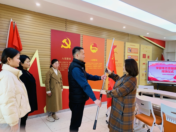 活動中,班主任老師不僅帶領(lǐng)學(xué)生們通過聆聽雷鋒故事,品讀《雷鋒日記》了解雷鋒的生平事跡,還組織學(xué)生以班級“團(tuán)結(jié)卡”的形式,將各自記錄下的班級好人好事進(jìn)行分享講述,向幫助過自己的“小雷鋒們”表示感謝,讓學(xué)生們在集體的互助與溫暖中記錄自己的“雷鋒日記”。同時校區(qū)支部書記李莉娟也為校區(qū)志愿服務(wù)隊授旗,勉勵各位志愿者積極弘揚(yáng)“奉獻(xiàn)、友愛、互助、進(jìn)步”的志愿精神。