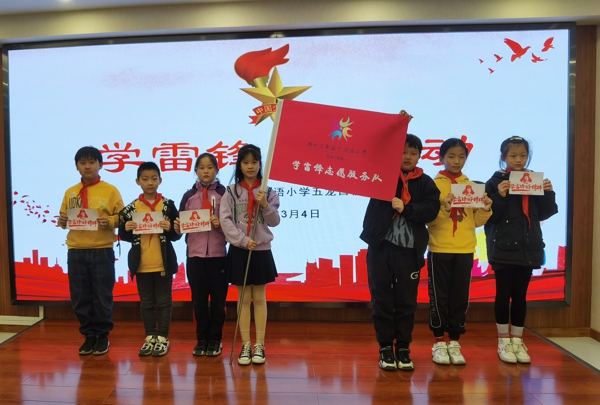爭當雷鋒傳人,爭做文明少年,真正把弘揚雷鋒精神貫穿于我們的學習和生活中,學校少先隊成立“學雷鋒志愿服務(wù)隊大隊”,各班成立“學雷鋒志愿服務(wù)中隊”。